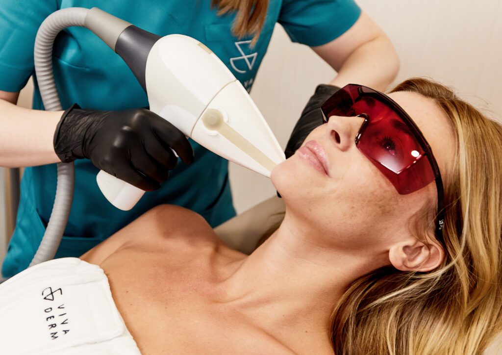 Procedura rozpoczyna się od zdezynfekowania skóry, następnie specjalista Viva Derm przykłada głowicę lasera do wybranego obszaru. Zintegrowany system chłodzenia zwiększa komfort podczas emisji impulsów świetlnych. Czas zabiegu waha się od kilkunastu do kilkudziesięciu minut, w zależności od wielkości obszaru poddawanego terapii.